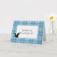 Silhouette einer Katze auf einem blauen karierten Muster für Beileid zum Verlust von Haustieren. Alle Texte können geändert werden.