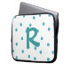 Whimsical Monogramm Oberarm in weißer Ausführung, mit Aquamarin-Polka-Punkten. Ein großes Aquamarin ein Monogramm mit einem Buchstaben, in der Mitte des Gehäuses. Personalisieren Sie den Brief für sich selbst oder als eine schöne Geschenkidee.