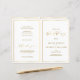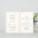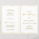 Ein faltbares, elegantes Hochzeitsprogramm mit einer Goldgrenze für Imitate, die zu vielen Hochzeitsthemen passt. Das Cover ist für beide Seiten konzipiert und wird dann auf der Zuhause gefaltet. Es zeigt den Veranstaltungsort, während das Innere mit Dienstorden und Hochzeitsfeiern bearbeitet werden kann.Dieses moderne Design mit Goldrahmen eignet sich für einen Gottesdienst oder eine humanistische Zeremonie. Der Goldfolieneffekt der IMITATE ist bedruckt und NICHT metallisch.