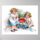 Ein wunderschönes Vintage Poster mit zwei niedlichen Mädchen, die mit Bbunnies spielen, von der amerikanischen Illustratorin/kommerziellen Künstlerin Ellen Hattie Clapsaddle gemalt.