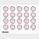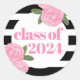 Ein Aufkleber mit Abschluss, der eine rosa Rosenillustrierung mit rosa "Class of 2024"-Text in Rosa zeigt. Hintergrund ist schwarz-weiße Streifen Muster.