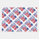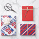 Dieses Bild zeigt ein Set von drei Packpapierblättern, die für die Feier des Abschlusses der Klasse von 2025 entworfen wurden. Das obere Blatt weist ein sich wiederholendes Muster des Textes "SENIOR Class of 25" in fett roten und blauen Buchstaben auf, begleitet von blauen Graduierungskappen und Diplomen auf weißem Hintergrund. Das mittlere Blatt ist eine solide rote Farbe und bietet eine lebendige und mutige Option. Das untere Blatt zeigt diagonale Streifen in Rot, Weiß und Blau und schafft so einen dynamischen und festlichen Look. Dieses Set ist ideal, um Geschenke für Absolventen zu verpacken, indem es jedem Geschenk eine feierliche Touch verleiht.