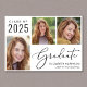 Einfache 2025 Abschluss-Ankündigung mit einer 3 Foto-Collage und "Graduate" in einem eleganten Drehbuch. Fügen Sie den Namen, das Unterrichtsjahr und die Schule oder Universität in der modernen Typografie.