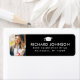 Elegantes White Abschluss Rücksendelabel Foto mit einem schwarzen Graduiertencap und dem Namen und der Adresse des Absolventen in modern .