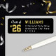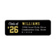 Das Abschluss-Rücksendelabel enthält sportive Jahrgangstexte und benutzerdefinierte Formulierungen, die mit einem Nachnamen und einer Rücksendeadresse personalisiert werden können. Die schwarze Hintergrundfarbe und die Farben Gold und Weiß des Textes können an jede Schulfarbe angepasst werden.