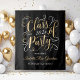 Stilvolle Graduierungsparty Foto Hintergrund bietet ein elegantes Imitat Goldfolie Design in Skript mit hübschen Scroll Akzenten. Umfasst eleganten, in Gold und Weiß gehaltenen Text, der mit dem Namen des Absolventen personalisiert werden kann, und eine Glückwunschbotschaft. Beachten Sie, dass der schwarze Hintergrund angepasst werden kann.