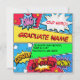 Pow! Ja! Class of 2018 Comic Book Style Einladung. Passen Sie es mit dem Namen des Absolventen, der Zeit, dem Datum und der Adresse des Veranstaltungsortes an. Farbenfrohe Einladungen für Ihren eigenen Superheld Senior!