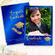 Erstellen Sie eine elegante königsblaue und goldene benutzerdefinierte Abschluss-Ankündigung mit dem Foto Ihres Absolventen für die Klasse von 2025. Dieses Design ist mit einem Graduiertencap und Diplomabbildungen in goldgelben Farben dekoriert. Die Vorlage macht es einfach, die Ankündigung des Abschlusses mit einem Namen, Jahr, Schulname, Foto und anderem Text zu personalisieren.