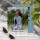Klassischer Skripttext "Graduate" zwei Foto Abschluss Ankündigung Design mit einem großen 5" x 7" Foto vorne mit einem kleineren quadratischen Foto auf der Rückseite und Ihre Abschluss Details unten. Die erste Vorlage ist Set für den Namen Ihres geschlossen Seniors, das Klassenjahr und die Schule unten unter dem Skript "Graduate". Ein weißer, halb-undurchsichtiger Hintergrund überlagert das Foto, um den schwarzen Text am unteren Pop zu erstellen. Erhältlich mit verschiedenen Hintergrundfarben oder das Design kann bearbeitet werden, um die hintere Hintergrundfarbe und Textfarben zu ändern. "Graduate" Textstil kann nur von Designern bearbeitet werden, aber die Farbe ist editierbar. Komposites Design von Holiday Hearts Designs (Rechte vorbehalten) mit Template-Platzhalter-Fotos über Unsplash bereitgestellt.