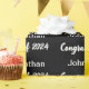 Dieses schwarze Packpapier hat eine Textvorlage, die Sie bearbeiten können. Sie können den weißen Text ändern, um den Namen Ihres Absolventen anzuzeigen, das Jahr, in dem der Student geschlossen wird (angezeigt: Klasse von 2024), und eine benutzerdefinierte Nachricht (angezeigt: Herzlichen Glückwunsch). Glückwunsch und Klasse von 2024 sind in einem eleganten Skript, aber der Name des Absolventen ist nicht in einem Skript.