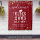 Willkommen Alumni in ihrer High School oder Uni-Klasse Wiedersehen (editierbar für jedes Jahr Wiedersehen) mit diesem benutzerdefinierten Farbband als Zeichen oder Foto op Hintergrund verwendet werden, mit goldenen Sternen, Streichlichter, Kalligraphie-Skript und dekorative Typografie und personalisiert mit Ihrem Schulnamen und geschlossen Klassenjahr. Die Farben (rot, gold und weiß) können in EDIT auf die Schulfarben oder die Party-Themenfarben abgestimmt werden. TAPESTRY OPTIONS: Das Beispiel wird in der Größe von 50x60" angezeigt. Andere Größen sind auf der Bestellseite verfügbar. HILFE: Für Hilfe bei Designänderungen oder Personalisierungen, Farbänderungen, Größenanpassungen oder der Übertragung des Designs auf ein anderes Produkt wenden Sie sich bitte an den Designer, BEVOR er Bestellung über die Registerkarte Zazzle Chat MESSAGE unten oder per E-Mail an makeitaboutyoustore@gmail.com.