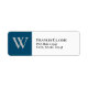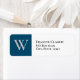 Klassisch verlassen, konturgebundene Monogramm-Rücksendeadressen-Aufkleber. Grosses graues Monogramm auf einem blauen links Rand mit klassischem Blocktext auf weißem Hintergrund.