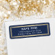 Fügen Sie eine elegante Touch zu den Umschlägen mit stilvollen marineblau-, goldfarbenen und weißen Rücksendeadressen-Aufklebern hinzu. Text auf dieser Vorlage ist einfach zu personalisieren. Das Design besticht durch eine schicke, moderne Typografie und ein klassisches Imitat mit Goldfolie und weißem Rahmen. Bitte beachten Sie, dass Gold farblich gedruckt ist, nicht metallische Folie.