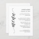 Genießen Sie die Eleganz Ihres Hochzeitsempfanges mit klassischen extravaganten Script-Hochzeitskarten für die Platteneinstellungen, die sich für eine Vielzahl von Veranstaltungen eignen. Diese Menükarten eignen sich hervorragend für feierliche Hochzeiten in schwarzer Krawatte, anspruchsvolle Empfänge im Ballsaal, zeitlose traditionelle Zeremonien und luxuriöse Hochzeiten in Urlaubsort. Die klassische Schriftzeichen und das elegante Design ergänzen das raffinierte Dekor, die schicken Tischeinstellungen und die klassischen Farbschemata. Egal ob Sie ein gemütliches Abendessen oder ein großes Fest veranstalten, diese Menükarten bieten Ihnen eine stilvolle und gepflegte Art, Ihr Menü zu präsentieren und gleichzeitig eine Touch zeitloser Schönheit zu Ihrem besonderen Tag hinzuzufügen.
