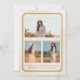 Eine klassische, einfache Ankündigung oder Einladung, um Ihren Absolventen zu feiern und Ihre Fotos zu präsentieren. Platz für ein Hauptfoto auf der Vorderseite und 3 Fotos plus Text auf der Rückseite, auf einem beigen, marmoriert aussehendem Hintergrund mit einem mocha-farbenen Rahmen.