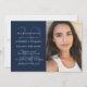 Für Ihre Uni- oder Highschool-Absolventen kann diese Fotokarte entweder als Party Einladung, als Ankündigung oder als beides verwendet werden! Mit einem großen Jahr hinter den Details des Party gibt es Platz für die Eltern, ihren Abschluss, einen vollständigen Namen und alle Einzelheiten zum Party anzukündigen. Der Rücken weist ein weißes Streifen-Muster auf. Die Farbe ist standardmäßig blau, kann aber durch Klicken auf "Anpassen" bearbeitet werden.