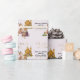 Dieses bezaubernde Geschenkpapier mit einem klassischen Folk- und Märchenmotiv auf einem weichen rosa Hintergrund. Eine Abbildung einer Prinzessin, die vor ihrem Schloss stehend ist, ist unten rechts abgebildet. Ihr Vater, der König, ist vor ihr stehend. Ein kleiner Froschprinz ist an ihrer Seite. Die Phrase "Einmal in der Zeit" wird oben in einem skurrilen Schriftart gedruckt.