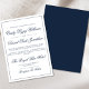 Klassische Regal elegante marineblau-weiße Kalligraphie-Skript mit minimalistisch schlichten Stil personalisierte Hochzeitseinladung. Dieses Produkt kann leicht personalisiert werden. Wenn Sie Hilfe bei der Anpassung des Produkts benötigen oder passende Produkte benötigen, kontaktieren Sie mich bitte über Zazzle.