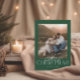 Diese Weihnachtsfotokarte zeichnet sich durch ein modernes, aber festliches Design aus, mit einem Single prominenten Foto an der Vorderseite. Der Hintergrund ist ein üppiges Grün, das an ein klassisches Urlaubsatmotiv erinnert, das an immergrüne Bäume erinnert. Der über oder unter dem Foto zentrierte Text "Frohe Weihnachten" wird in einem eleganten und modernen Schriftart in Weiß dargestellt, der einen markanten Kontrast zum grünen Hintergrund bietet. Die Einfachheit des Single-Foto-Layouts erlaubt es, die Bühne in den Mittelpunkt zu stellen, sodass es sich perfekt für ein Familienporträt oder einen besonderen Moment aus dem Jahr eignet. Auf der Rückseite der Karte befindet sich ein weiteres Foto, das Ihnen die Möglichkeit bietet, einen offenen oder zusätzlichen Speicher zu teilen. Unter dem Foto gibt es Platz für eine personalisierte Botschaft, die es Ihnen ermöglicht, einen herzlichen Urlaub zu begrüßen, Dankbarkeit auszudrücken oder Ihre Wünsche für das kommende Jahr mitzuteilen. Die Nachricht kann so angepasst werden, dass sie den Familiennamen und das Jahr enthält und das Design kohärent und persönlich behalte.