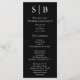 Das klassische mit Monogramm Schwarz-Weiß-Hochzeitsprogramm beinhaltet die Informationen zu den Hochzeitsfeiern.