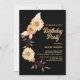 Eine stilvolle und elegante Geburtstagsveranstaltung mit einer orangefarbenen Blume und braunen Blätter mit moderner Goldtypografie auf schwarzem Hintergrund.
