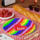 Klassische Regenbogenstreifen mit Herzfarbe Pappteller