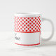 Klassische rote Polka-Punkte-Monogramm-Skripttypog Jumbo-Tasse