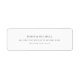 Dies ist eine moderne klassische, minimalistische schwarze Typografie auf einem weißen Hintergrund Rücksendelabel. Personalisieren Sie Ihren Text- und Schriftart-Stil mit Ihrem Namenstempo und Ihrer Adresse. Dies ist speziell für Mailingadressen in verschiedenen besonderen Anlässen geeignet. So packen Sie es, um Ihre Einkäufe zu einem besonderen und einzigartigen machen.