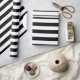 Stellen Sie Ihr eigenes personalisiertes Verpackungspapier in der Art her. Dieses "klassische Schwarzweiss-Streifen-" Packpapier ist eine große Weise, Ihre Geschenke bedeutungsvoller und einzigartig sofort zu machen.
