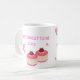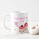 "Klassische weiße Keramik mit zwei rosa Donuts, rosa Herzen und "Happy New Year 2025". Süß und feierlich!"