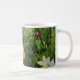 Das Bild auf diesem Produkt zeigt einen Garten mit Frühlingsblumen; die bunten Blüten in hübschen Farbtönen Gelb, Weiß, Rosa, lila, Lavendel und Fuchsia, mit einem lustigen Polka Dot Trim.