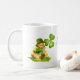 Diese klassische Tasse wird mit einem niedlichen Kobold-Druck am St. Patrick's Day gezeigt. Passen Sie dieses Objekt an oder kaufen Sie, wie es ist.