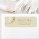 Ein klassisches Label mit goldenem Ringdesign, das durch künstlerisch weiße Pinselstriche übersät ist und auf einem cremigen Vanillehintergrund liegt. Personalisieren Sie es mit dem Link Anpassen. Dies ist Teil einer Kollektion mit einer passenden Einladung, Umschlag und anderen Hochzeitsessenziellen.