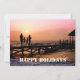 Elegante Weihnachtsfeiertage individuelle Fotokarte. Sie können das Foto auf der Vorderseite durch Ihr eigenes Foto ersetzen. Die Rückseite der Karte zeigt eine klassische Winterlandschaft mit festlich beleuchteter Hütte und dem Weihnachtsmann, der durch den Nachthimmel fliegt.