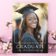Abschluss-Foto-Plakette mit Ihrem Foto mit einem dünnen, weißen Bogen-Overlay und der Text "graduate" in einem eleganten Schriftart mit Ihrem Jahr und Schulnamen unten.
