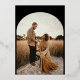 Klassisch elegantes und weiches blumenmonogramm Schwarz-Gold-Folie Hochzeitsbogen Foto mit kleinen geblüht Konturen, fügen Sie Ihr Paar monogramm, mit boho Schwarz klassische Hochzeitseinladung mit einer modernen Drehung, fügen Sie Ihr Foto auf der Rückseite in einer Bogenform.