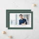 Diese einfache und raffinierte Abschluss-Ankündigung verfügt über ein horizontales Foto auf der Vorderseite, umgeben von einem dunkelgrünen Rahmen mit einem Herringbone-Tweed-Effekt. Der Stoff-Look (bitte beachten Sie, dass es nicht wirklich Stoff ist) verleiht diesem Design - das auch als Abschluss-Einladung verdoppelt wird - einen klassischen akademischen Stil und der einfache Typ ist die perfekte personalisierte Touch. Die Rückseite der Karte ist ein passendes dunkelgrünes Muster mit Platz für ein zweites Foto und Graduierungstext. Text und Foto können auch leer verlassen werden. Diese Originalgradkarte von Lea Delaveris Design ist auch als Ankündigung und Einladung zum Download erhältlich und kann in verschiedenen Farbtönen in der Herringbone tweed Abschluss Kollektion gefunden werden.