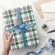 Moderner karierter Hintergrund mit roten, grünen, blauen und weißen Tartan-Mustern. Modernes, aber schlichtes schlichtes skurriles Design, um diese lustigen Geburtstage, Überraschungen oder Weihnachtsgeschenke mit einzupacken. Erhältlich bei Produkten wie Verpackungen und Papiertaschentüchern, Geschenktafeln, Taschen und Geschenktaschen, Aufklebern und Bändern.