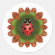 Klassischer Rundaufkleber mit Ladybug auf rot & gr Runder Aufkleber