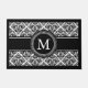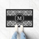 Begrüßen Sie Ihre Familie und Freunde in der Art mit diesem - klassischer Schwarz-weißer Damast-Blumenmuster-Monogramm-Fußmatte. Wenn Sie weitere Kundenbezogenheit benötigen, klicken Sie bitte - fertigen Sie es besonders an - knöpfen und benutzen unser Entwurfswerkzeug, um die Größe neu zu bestimmen, sich drehen, ändern Farben, addieren Text und mehr.