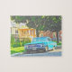 Farbenfrohe Foto-Malerei mit klassischem Auto- und Stadtblick, ein herausforderndes Rätsel!