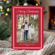 Freuen Sie sich auf herzliche Urlaubsstimmung mit dieser Foto-Urlaubskarte, die einen fett roten Hintergrund und einen traditionellen Rahmen mit doppelter weißer Grenze bietet. "Frohe Weihnachten" wird in passender Schrift über Ihrem Foto angezeigt, mit dem Nachnamen und dem unten stehenden Jahr. Das klassische Rot-Weiß-Design schafft einen festlichen, zeitlosen Look, der perfekt für die Saison ist. Auf der Rückseite befindet sich ein quadratisches Foto mit Platz für Ihre personalisierte Botschaft, was diese Karte zu einer wunderschönen Möglichkeit macht, Weihnachtsfreuden mit Familie und Freunden zu teilen.