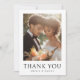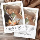 Dankeschön Hochzeitskarte mit dem Foto "Danke" in einem eleganten Serif-Schriftart mit Ihren Namen unten. Zusätzliche Foto und benutzerdefinierte Dankeschön-Nachricht auf der Rückseite. Schwarzer Text auf weißem Hintergrund. Farben und Schriftart können individuell angepasst werden.