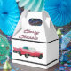 Gable-Style-Bevorzugung mit einem Vorder- und Rückseite-Bild eines klassischen rosa Cadillac und den Worten "Klassisches Gehäuse" (50er Slang) in rosa und schwarzen Polobuchstaben im 50er. Schwarze Grenzen. Siehe dazu passende Konfetti, Gefallen-Tasche, Gefallen-Tag, Geschenktüten, Etikett, viereckiger Aufkleber, maßgeschneiderte Vinyl-Aufkleber und Packpapier. Sehen Sie sich die gesamte Sammlung von Nifty 50er Favor Box in den SONDERTOUCHS an. | Abschnitt Gastgeschenke.