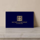 Ein Imitat Metallisches goldfarbenes Schlüssellogo wird mit Ihrem Namen oder Firmennamen für ein elegantes Logo auf dieser Designerkartenvorlage kombiniert. Set auf dunkelmarineblau-blauem Hintergrund für eine luxuriöse Ästhetik. Art und Design © 1201AM CREATIVE / www.1201am.com