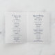 Dieses klassische, mit Blumen gefaltete Hochzeitsprogramm ist perfekt für eine rustikale Hochzeit. Das Design ist mit handbemalten, wasserfarbenen blauen Blumen und gut zusammengesetztem Blattwerk in einem hübschen Bouquet gestaltet. Geben Sie ein Angebot oder eine kurze Nachricht, die Reihenfolge des Dienstes, Hochzeitsfeier und Dankeschön Nachricht.