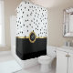 Der elegante Duschvorhang im Monogramm-Design kann mit Ihrem eigenen Familiennamen initialisiert werden. Das Design ist in Gold, Schwarz und Weiß gehalten und mit einem stilvollen und trendigen Punkt-Muster versehen. Eine Touch Klasse für jedes Badezimmer Dekor.