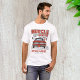 Ein Design eines klassischen Muskelwagens, das auch Vintage Garage für Sondermotoren beinhaltet. Dieses Design sieht auf diesem Mens T - Shirt wirklich effektiv aus