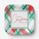 Klassisches Rot- und Grünes Weihnachts-Kariert-Pap Pappteller
