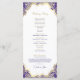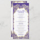 Dieses Hochzeitsprogramm zeigt ein minimalistisches Design in lila und elegantem Gold. Die Vorderseite hebt die Namen des Ehepaares in einem raffinierten goldenen Rahmen-Set auf einem lila Hintergrund hervor und verleiht ihm ein ausgeprägtes und gediegenes Aussehen. Der Rücken präsentiert die Hochzeitsdetails in einem sauberen, modernen Format mit subtilen goldenen Akzenten. Die Balance zwischen lila königlicher Kulisse und dem zeitlosen Luxus des Goldes schafft ein anspruchsvolles und charmantes Programm, das sich perfekt für elegante und formelle Hochzeiten eignet.